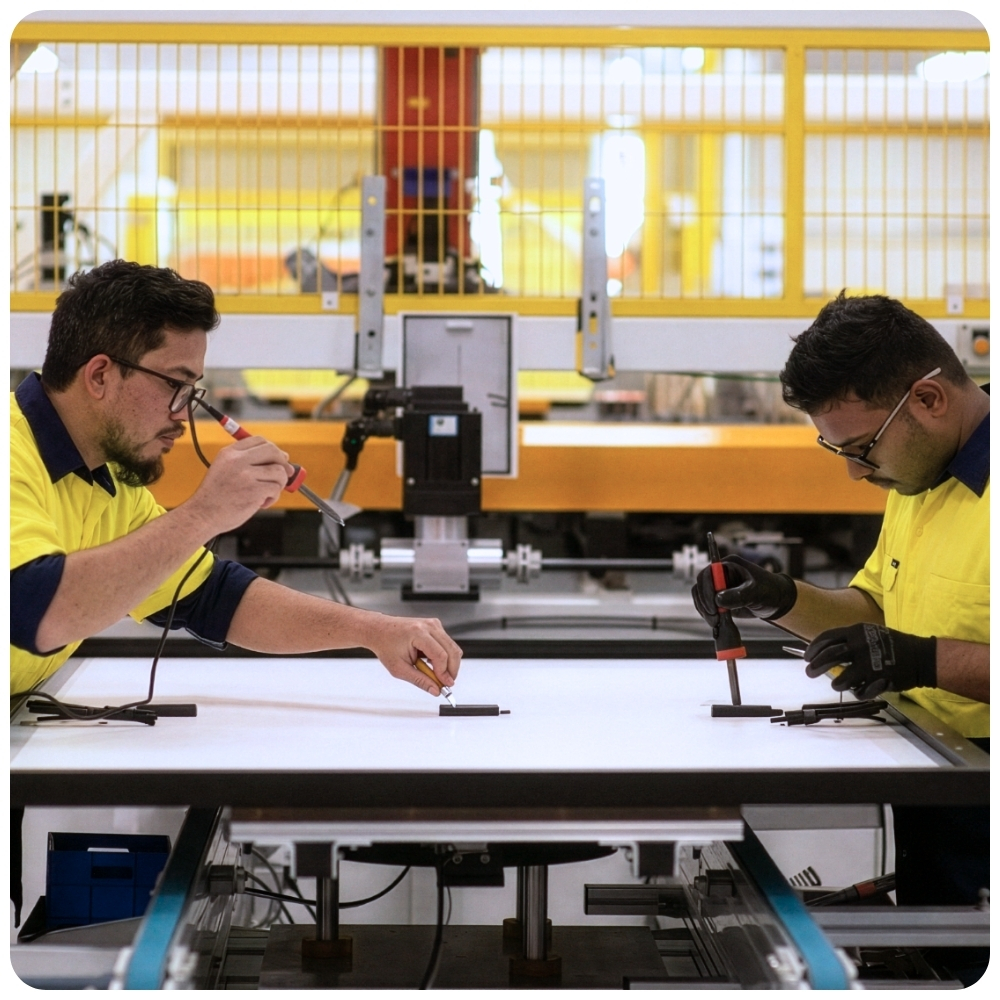 In our brief yet impactful history, Tindo has emerged as a formidable player in the Australian PV module market. Our Mawson Lakes operations have witnessed significant growth and expansion, reflecting our commitment to delivering panels of unparalleled quality with each new model. Today, we directly employ around 70 dedicated individuals in roles from Engineering, Quality Assurance, Sales, Service, Installations, Administration and Management, and each of us is proud to work in a company that is striving for excellence and making a positive difference.